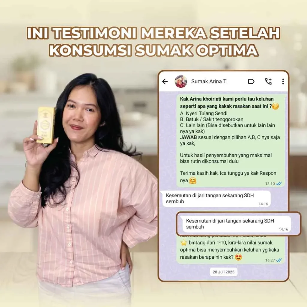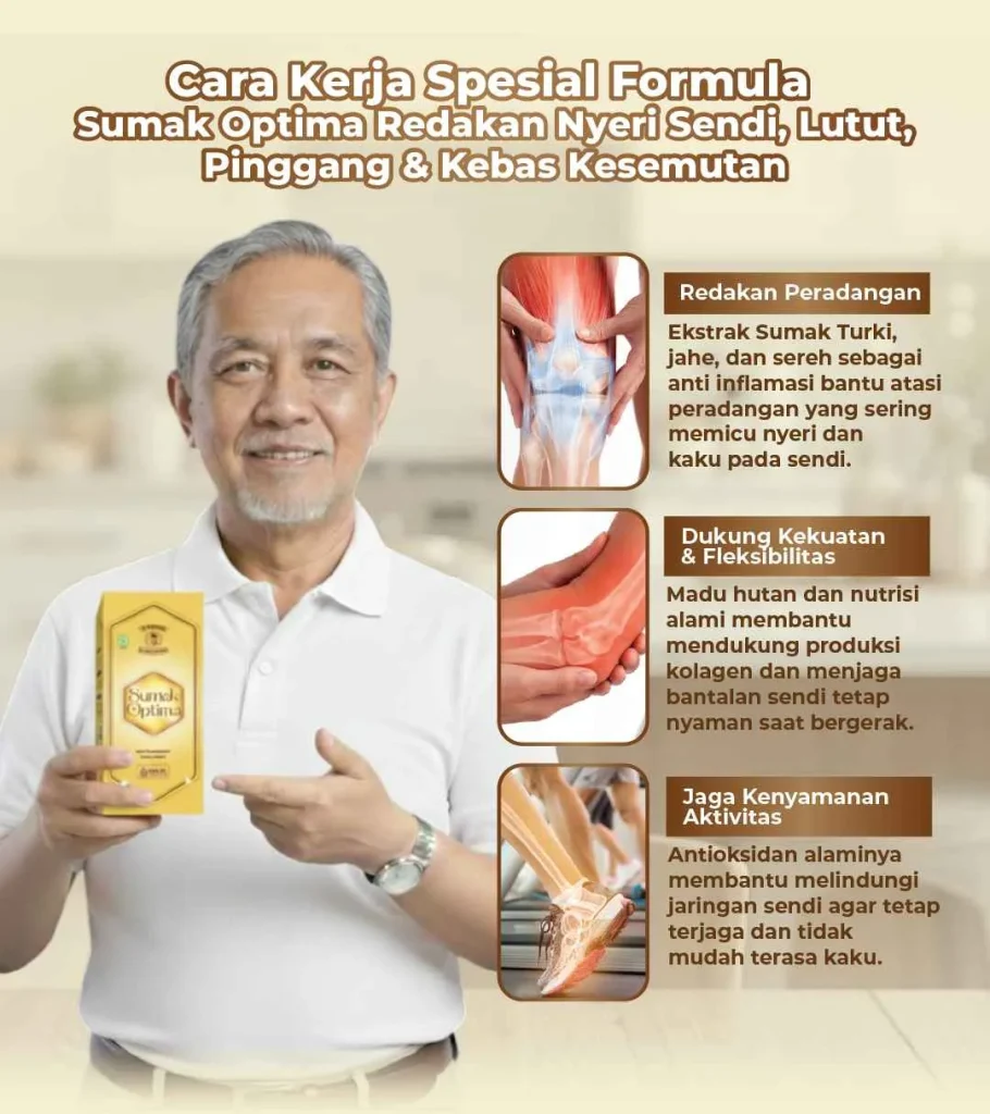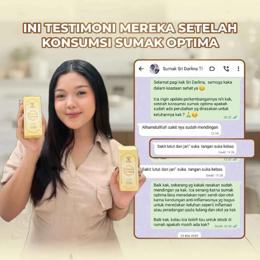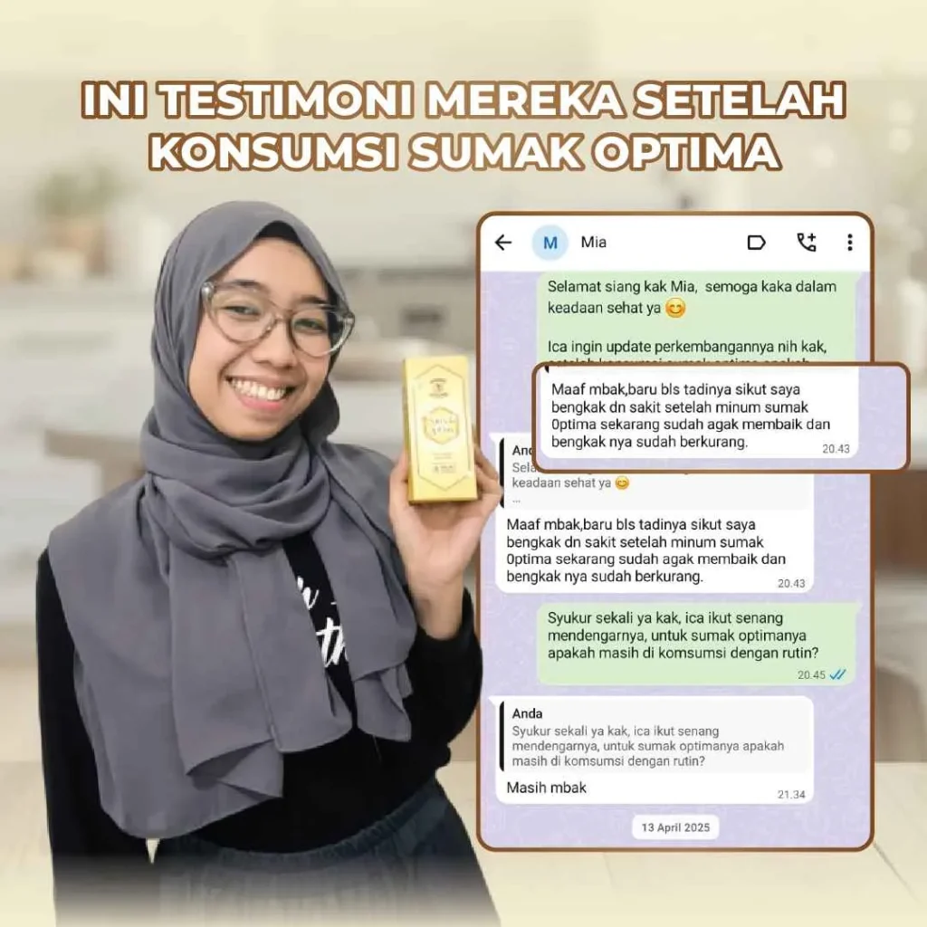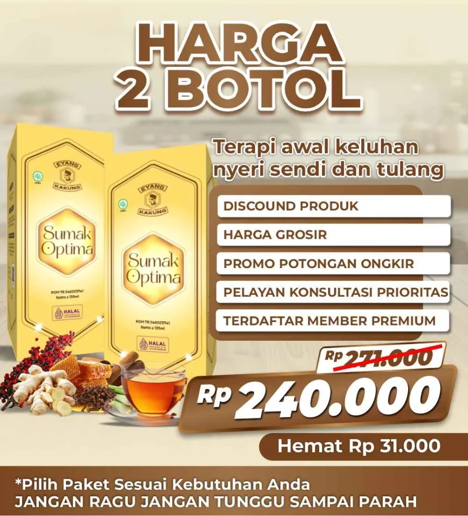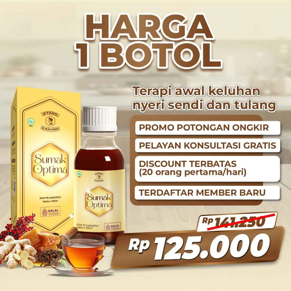 Sumak Optima bukan obat-obat-an. Sumak Optima merupakan minuman herbal sendi yang terbuat dari 100% bahan alami.