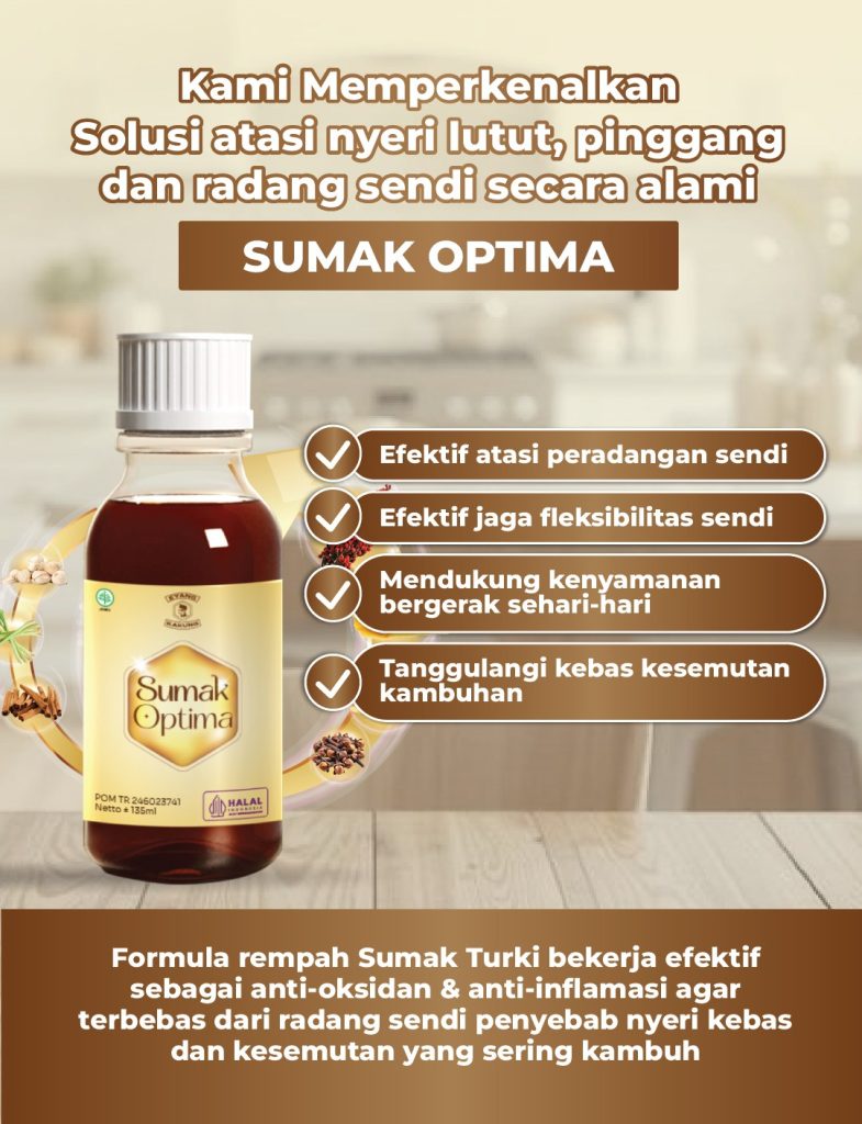 Sumak Optima bukan obat-obat-an. Sumak Optima merupakan minuman herbal sendi yang terbuat dari 100% bahan alami.